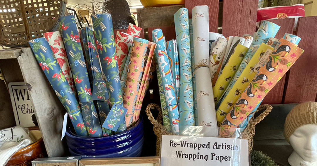 A gift is more fun when it’s wrapped, however, it can seem like a shame to just chuck that pretty paper in the trash once the gift is opened. To help make gift giving a little more sustainable, we carry “Re-wrapped” wrapping paper for any occasion! Re-wrapped paper is made from 100% recycled paper, printed Earth-friendly with vegan inks, and is fully recyclable!